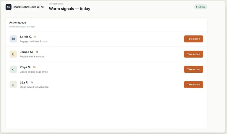 I’m Mark - a fractional GTM leader for B2B startups. I build live infrastructure that runs on your context, your playbook, your data. And keeps working after I leave.